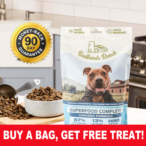 Buy a 64oz bag of Badlands Ranch Superfood Complete, Get a FREE Treat! Superfood Complete contains some of the healthiest foods on Earth — humanely...