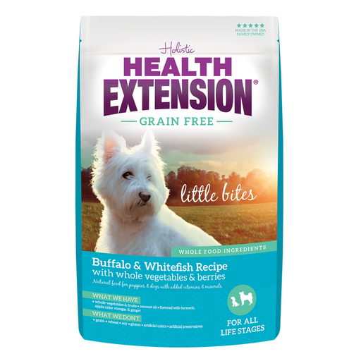 View full detailsHealth Extension Grain Free Little Bites Buffalo & Whitefish Recipe Dry Dog Food is specially made to support the health and well-being of your...