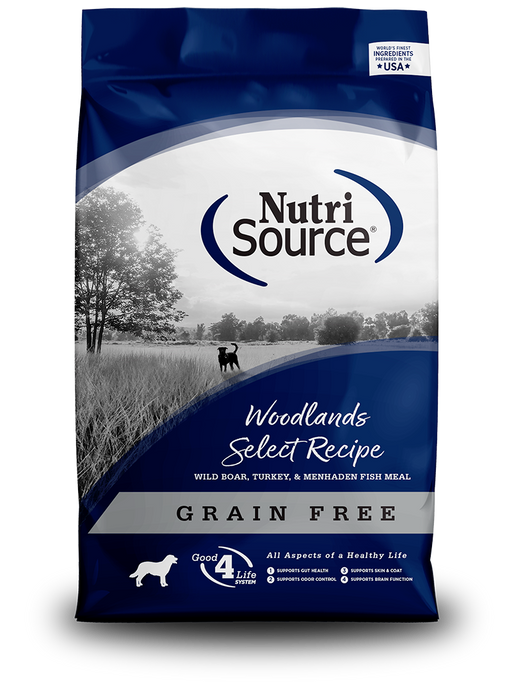 View full detailsAs a member of the grain free series of dog foods, NutriSource Grain Free Woodlands Select Recipe Dog Food is formulated to meet AAFCO guideli...