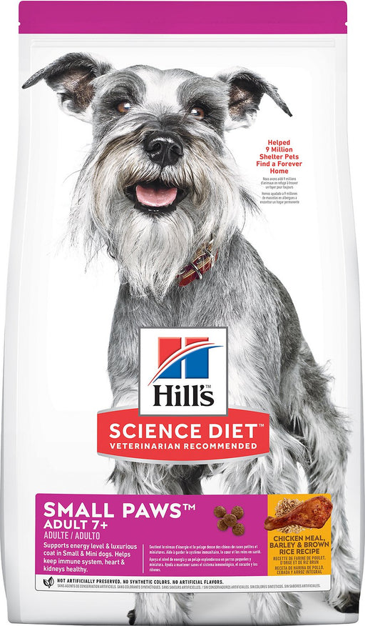 View full detailsBig on Love, Small in Size.Hill's Science Diet Small Paws Adult 7+ dry dog food is tailored nutrition to support graceful aging in Small & Min...