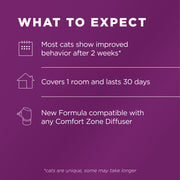 Is your cat peeing on the bed and carpet or scratching the furniture and door frames? These behaviors can be signs that your cat is stressed. Comfort Zone diffusers dispense a drug-free vapor that mimics a cat's natural calming pheromones to create a calming environment which helps reduce your cat's destructive behaviors. The pheromones are diffused into the air which signal to the cat that the area is safe and familiar, making your cat feel more comfortable. Use the Comfort Zone Calming Diffuser Kit if you see your cat urine spraying or scratching in the home. You can also use the diffuser if you've just adopted a new cat, moving to a new home or even when rearranging your furniture which can be stressful events for cats that can trigger these destructive behaviors. Plug in a diffuser into each room your cat roams or spends the most time. Replace the refill every 30 days and the diffuser unit every 12 months. Our products are safe and certified to U.L standards.
