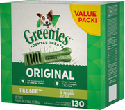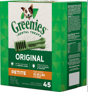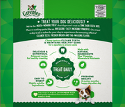 One GREENIES™ Original Dental Treat a day is all it takes for clean teeth, fresh breath and a happy dog. Your dog can't wait to sink their teeth into these delicious, original-flavor dental dog chews because they feature a delightfully chewy texture that fights plaque and tartar. Irresistibly tasty and incredibly powerful, GREENIES™ Treats for Dogs are recommended by veterinarians for at-home oral care. Best of all, these natural dog treats are made with highly soluble ingredients that are easy to digest. Give your dog the mouth-wowing treat that helps promote oral health with GREENIES™ Dog Treats.