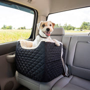 *SAFETY AND COMFORT. The Lookout elevated dog car booster seat hooks into the seat belt system to keep it in the backseat, while the internal strap keeps your dog in the Lookout. No more wandering the backseat or climbing up to the front while driving. The Lookout is a safer alternative to holding your dog while driving or giving them free rein in the car, so everyone can enjoy the ride with peace of mind.