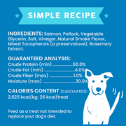 Salmon, Pollock, Vegetable Glycerin, Salt, Vinegar, Natural Smoke Flavor, Mixed Tocopherols (a preservative), Rosemary Extract