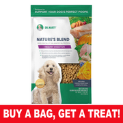 Dr. Marty's Nature's Blend Healthy Digestion combines premium cuts of poultry and fish for protein, omega-3's to support healthy skin, mobility, and balanced energy, and antioxidants from real veggies, seeds, and fruit to support lasting health. Plus, this formula contains prebiotic fiber from organic fermented vegetables to help support your dog's healthy gut, easy digestion, and perfect poops!