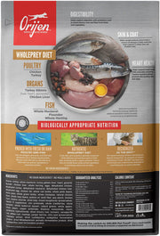 Help your cat thrive with the power of protein-rich recipes that provide peak nourishment. As obligate carnivores, modern cats are built like their ancestors and thrive on a Biologically Appropriate diet rich in protein and fat sourced from a variety of animal ingredients. ORIJEN Original Cat diet is made with fresh or raw free-run chicken and turkey, wild-caught fish and cage-free eggs. Packed with WholePrey animal ingredients like organs and bone, ORIJEN food is made with the most nutrient-dense, succulent parts of the prey to deliver the nutrition cats need. With 90% quality animal ingredients and a freeze-dried liver coating, this diet is beyond comparison.